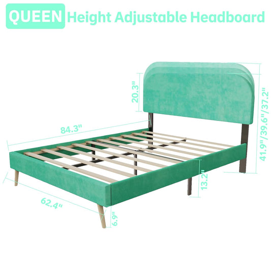 Aqua Velvet Arc Platform Bed with Adjustable Bed