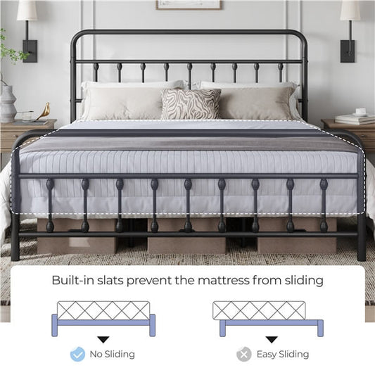Farmhouse Style Metal Platform Bed Frame, No Box Spring Required