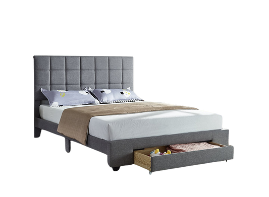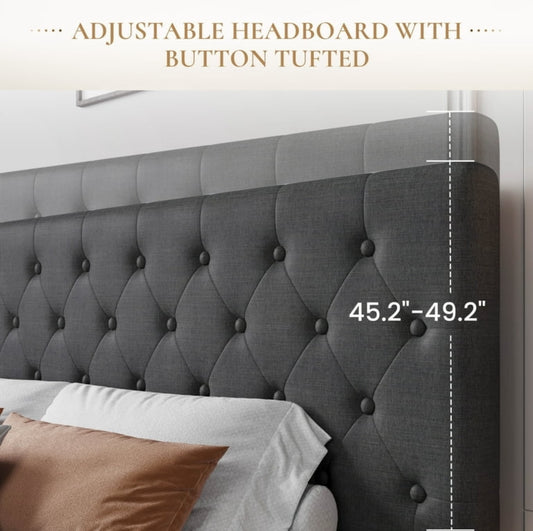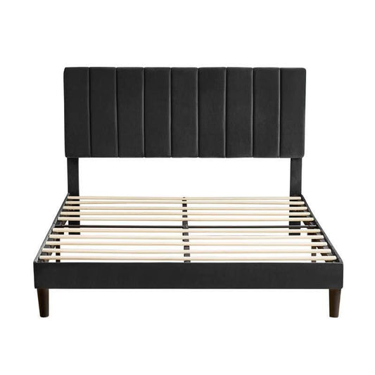 Grey Fabric Vertical Tufted Upholstered Platform Bed Frame