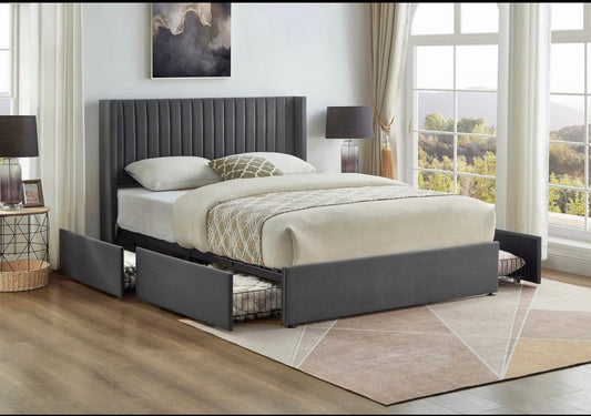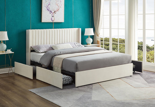 Upholstered Velvet Wingback Storage Platform Bed with 4 Drawers