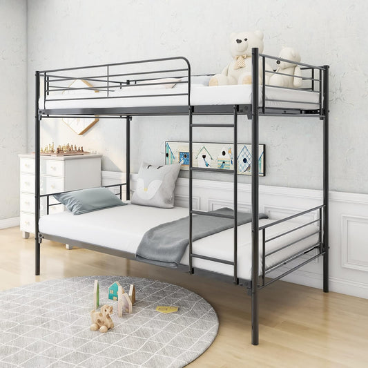 Twin/Twin Metal Platform Bunk Bed with Metal Slats Support