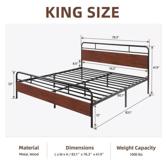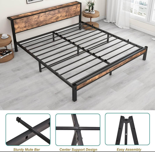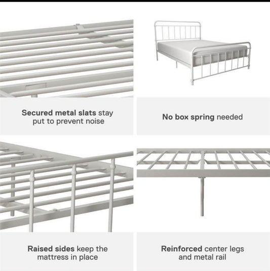 Farmhouse Style Metal Platform Bed Frame, No Box Spring Required