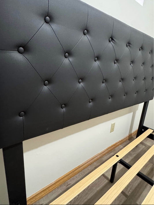 Black Vegan Leather Diamond Tufted Platform Bed Frame