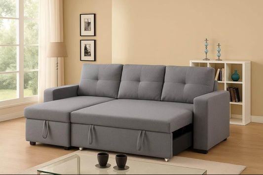 Grey Fabric Sectional Sofa Bed, Reversible Chaise