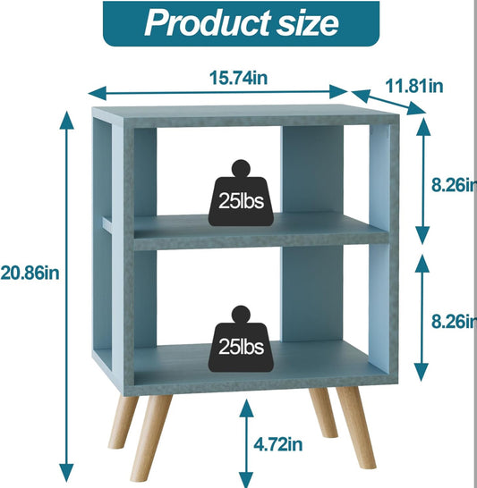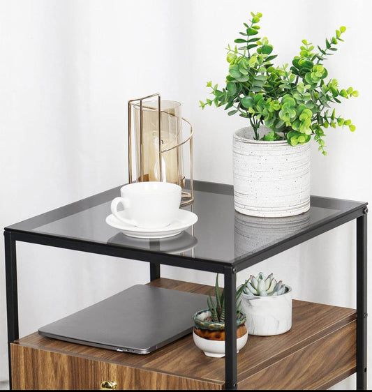 Square Nightstand with Drawer: 2 Tier Tempered Glass Top Shelves