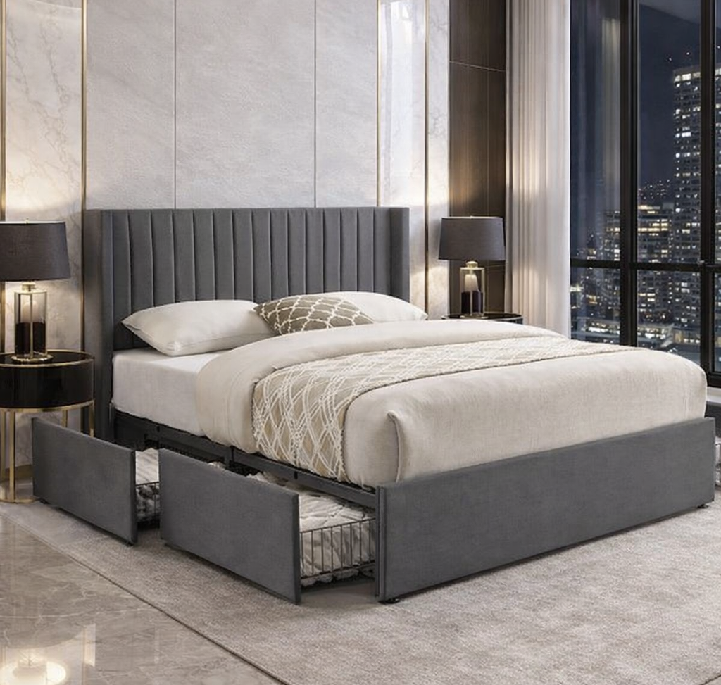 Wingback luxurious velvet fabric with 4 drawers for storage