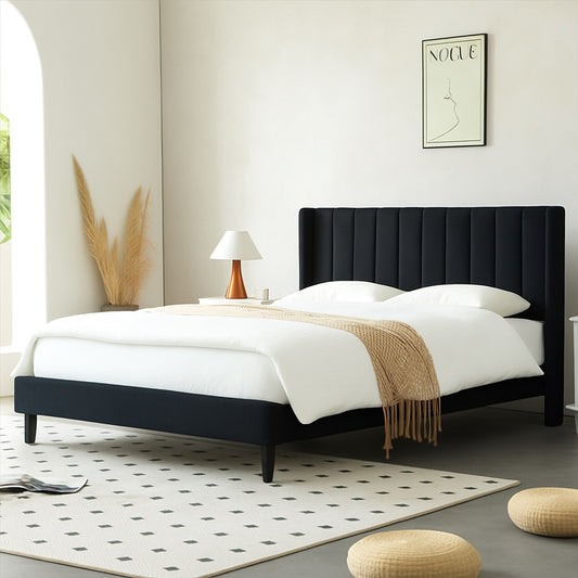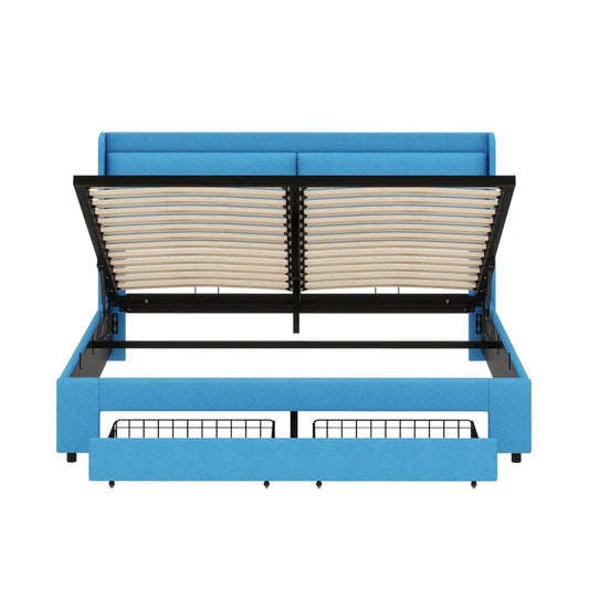 Wingback Upholstered Hydraulic Storage Platform Bed